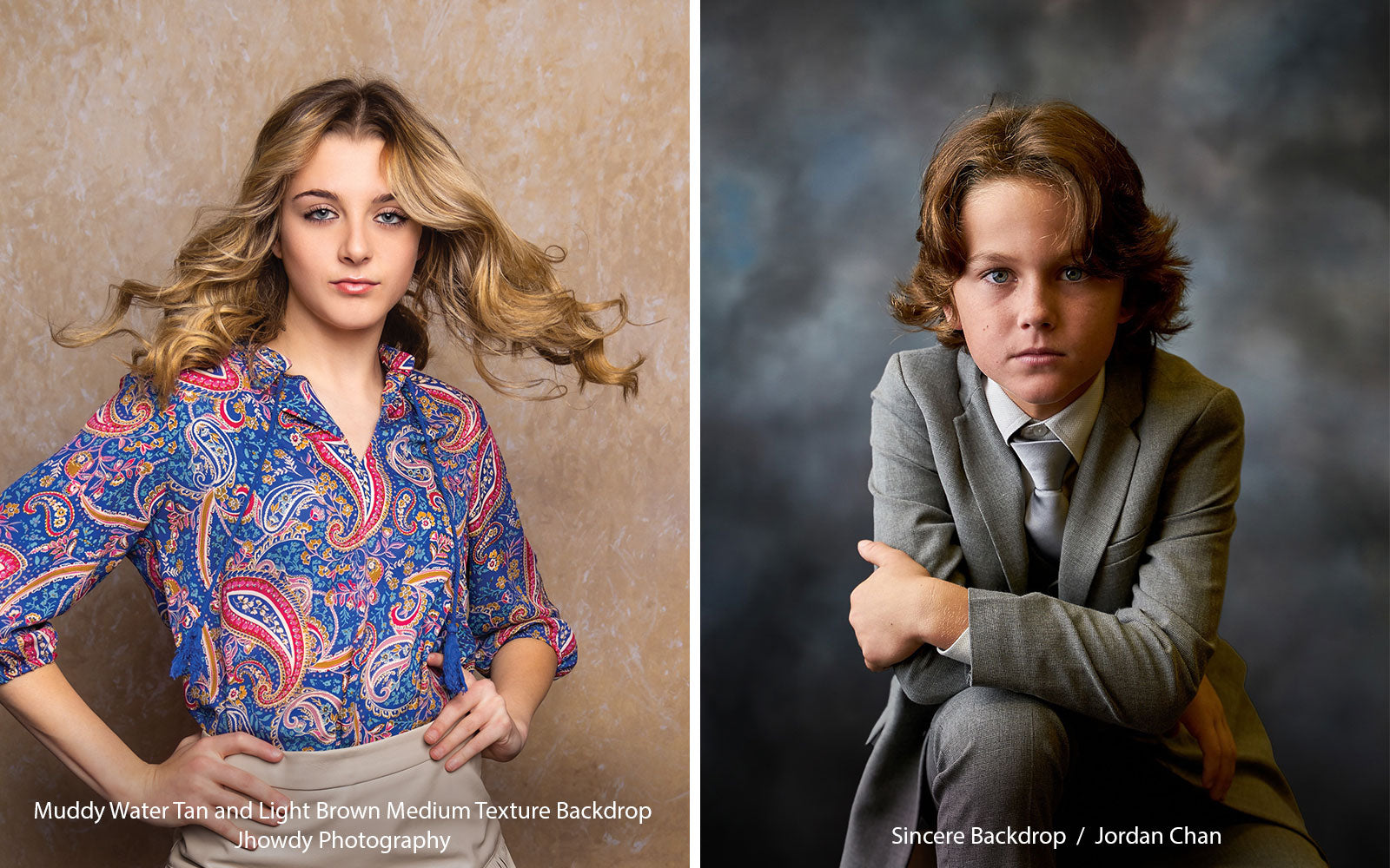 These classic portrait styled backdrops are perfect for elegant portraits, business clientele, and energetic senior portraits.