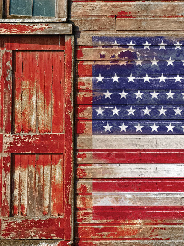 The Rustic American Flag Barn Photography Backdrop is a stunning, vintage-inspired backdrop featuring a weathered barn with a distressed red door and an American flag painted across aged wooden panels. The backdrop captures the essence of rural America, bringing a bold yet rustic feel to your photography sessions. With the peeling paint and faded stars and stripes, this backdrop offers a unique blend of patriotism and vintage charm, making it perfect for patriotic-themed photoshoots, portraits, and product photography.