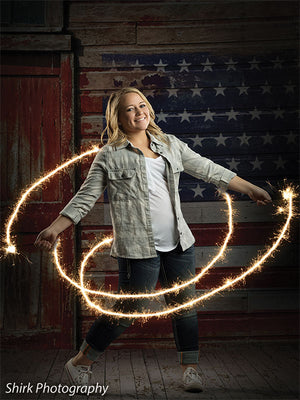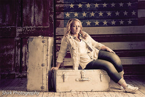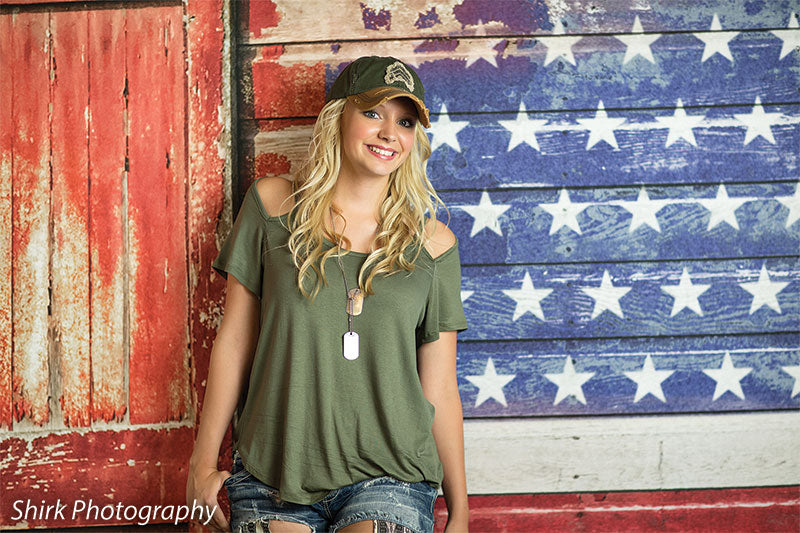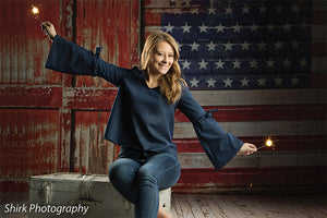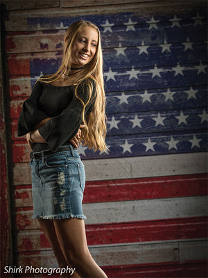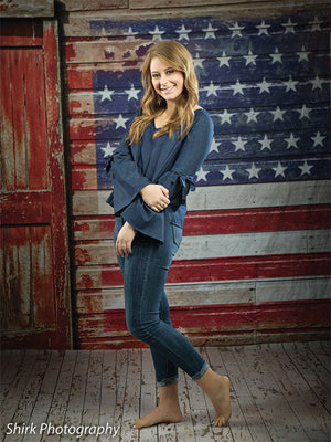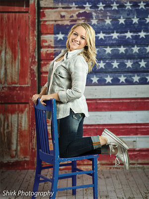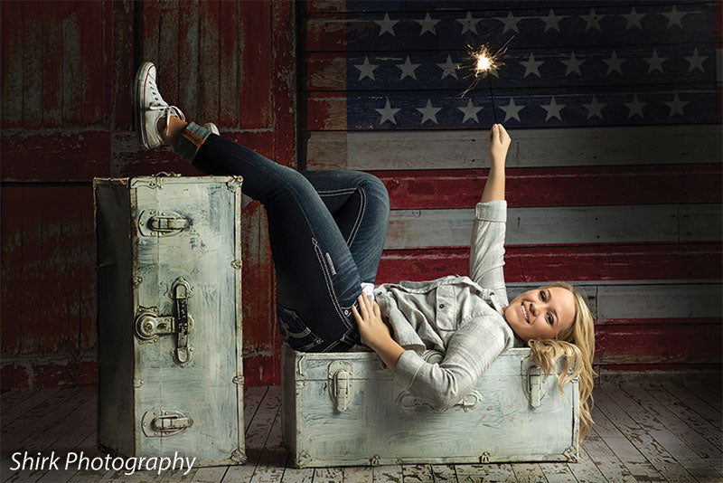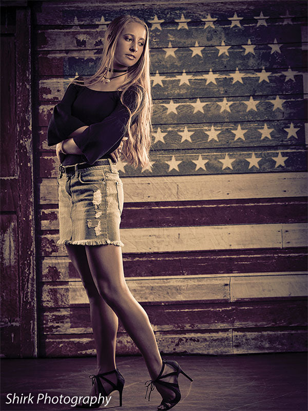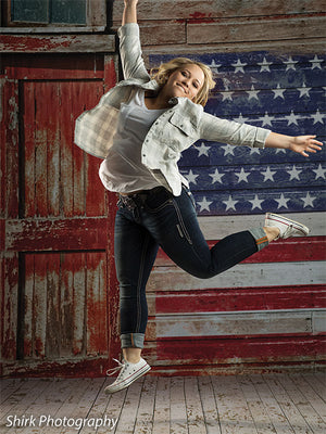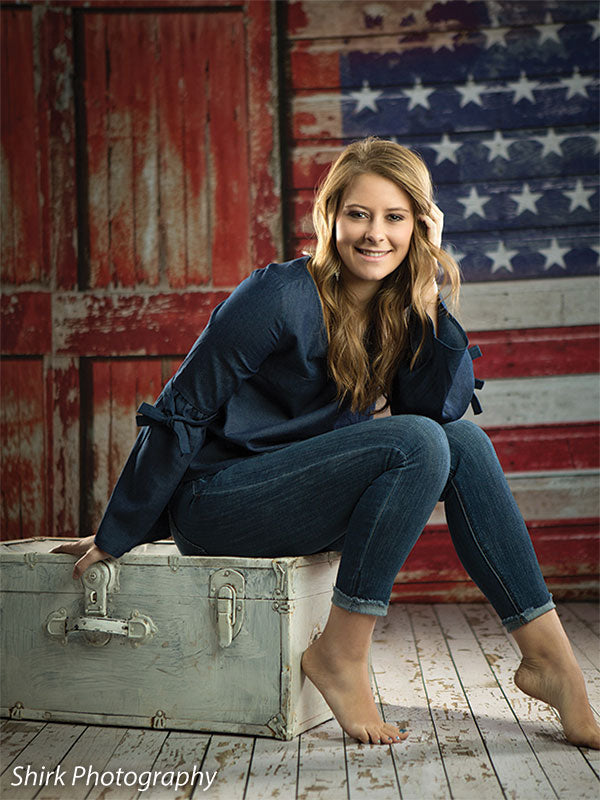 This backdrop is ideal for Fourth of July sessions, military portraits, lifestyle photoshoots, or even editorial work. The intricate details of the weathered wood and the distressed American flag make this backdrop visually engaging, ensuring your subjects stand out in every shot. Whether used in studio settings or on-location shoots, the Rustic American Flag Barn Backdrop adds a timeless, gritty appeal that enhances any photography style.