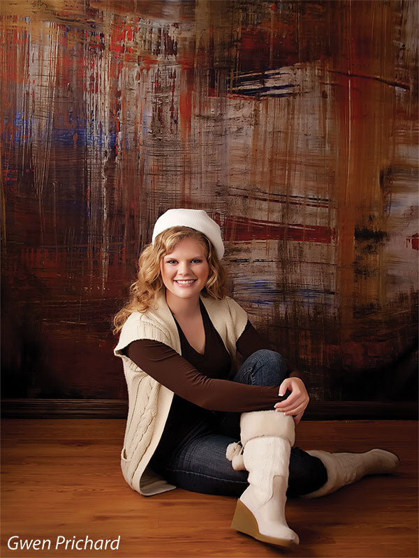 The Helter Skelter Photography Backdrop brings bold expression and rich visual energy to any shoot. This layered abstract features deep reds, muted golds, electric blues, and earthy browns, all applied in dynamic vertical and horizontal brush movements. The distressed texture and vibrant palette create dramatic contrast, making it ideal for stylized portraits and high-impact editorial imagery.