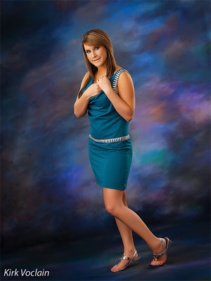The Lord Peter Photography Backdrop offers a moody blend of stormy blues, forest greens, and soft violet grays, artfully brushed into an abstract, cloud-like texture. This sophisticated design delivers subtle movement and depth while maintaining a beautifully neutral tone that adapts effortlessly to different lighting styles. Perfect for photographers seeking a painterly yet understated background that doesn't overpower the subject.