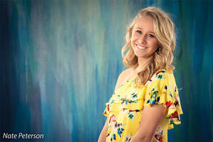 The Abstract Waterfall Photography Backdrop features a captivating and artistic representation of cascading water through abstract strokes of blue, green, and soft yellow. This backdrop brings a tranquil, modern feel to any photoshoot, making it perfect for children's portraits, professional headshots, and creative photography sessions. The abstract design offers versatility, complementing a variety of themes and styles without overpowering the subject of the photograph.