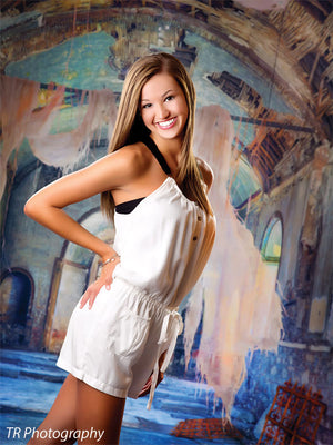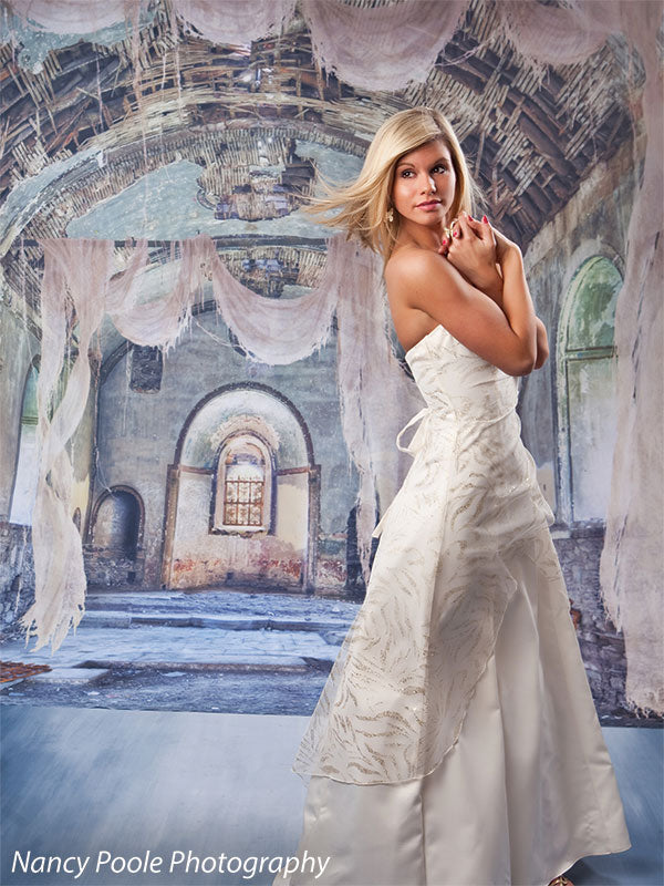 Capture the haunting beauty of an abandoned church with this eerie photography backdrop. Featuring decaying walls, tattered fabric, and intricate architectural details, this backdrop adds mood and atmosphere to your photos. Perfect for conceptual, gothic, or horror-themed shoots, this high-resolution design ensures every detail of the church’s eerie decay is captured with stunning clarity. Available in multiple sizes and materials, including Canvas, Freedom Cloth, Poly Paper, Twist-Flex, and Velvet, this backdrop offers flexibility for both studio and on-location photography.