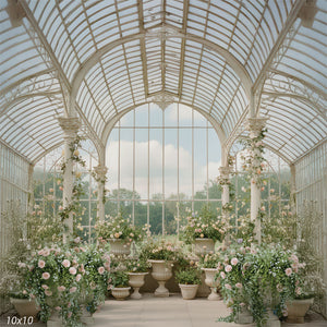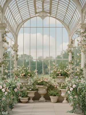 Inspired by the quiet beauty of a historic glass conservatory, the Garden Solarium–Spring Conservatory backdrop offers a luminous, floral setting made for photographers, by photographers. Its soft architectural lines, overflowing spring florals, and gentle high-key glow create a refined space for bridal portraits, maternity sessions, family moments, and fine-art imagery.