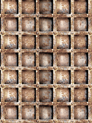 • General Description: A high-quality, industrial-inspired photography backdrop featuring a distressed metal grid design with rusted details for a bold, textured look.