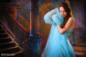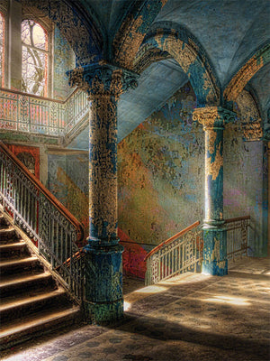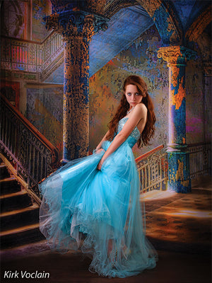 Step back in time and bring a touch of historic grandeur to your photography sessions with the Aged Renaissance Staircase Photography Backdrop. This beautifully detailed backdrop captures the faded elegance of a Renaissance-era palace staircase, complete with intricate iron railings, peeling paint, and grand columns bathed in warm, natural light. Perfect for a wide range of professional photoshoots, this backdrop offers a timeless, dramatic setting that enhances your creative vision.