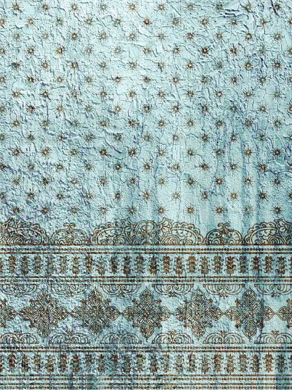 Riya Blue Photography Backdrop with Ornate Gold Pattern and Textured Blue Background