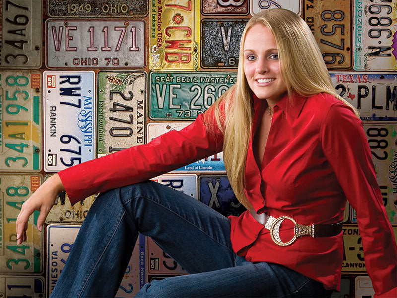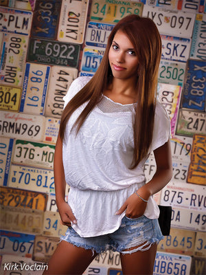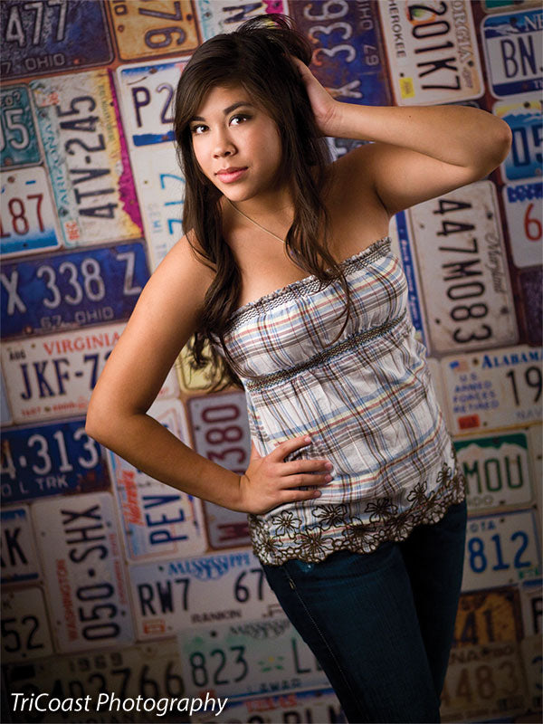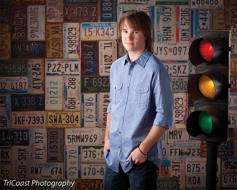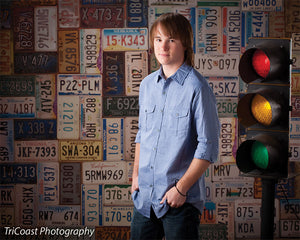 The Route USA Photography Backdrop captures the nostalgic spirit of American road trips with a collage of authentic vintage license plates. This colorful backdrop bursts with personality and history, featuring a wide range of tags from different states, decades, and designs. It's the perfect backdrop for sessions that crave Americana, retro vibes, or travel-themed storytelling.