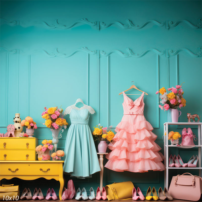 Transform your photoshoots into a fashion paradise with Barbie's Dream Closet Photography Backdrop. This vibrant and stylish backdrop features an array of chic dresses and accessories arranged in a beautifully decorated closet scene. Perfect for children's photoshoots, birthday parties, and Barbie-themed events, this backdrop adds a touch of elegance and fun to any photography session.