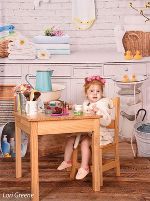 With its soft whites, light blues, and rustic wooden tones, this backdrop evokes a cozy and playful setting that enhances your photography. Whether you're working in a studio or an on-location shoot, this versatile backdrop is sure to create memorable images of early childhood.