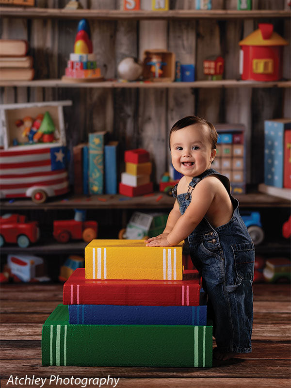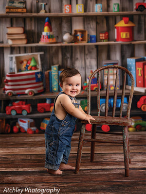 Kids Cake Smash Rustic Wooden Toy Photography Backdrop