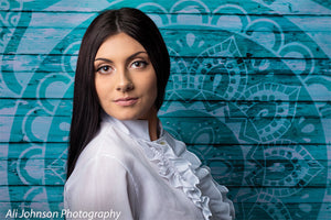 Whether you're shooting portraits, lifestyle sessions, or creative editorials, the Mandala on Turquoise Wood Photography Backdrop offers a stunning and versatile option. Its intricate design, combined with the natural, rustic feel of distressed wood, makes it an excellent choice for photographers looking to create unique and captivating images.