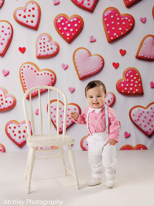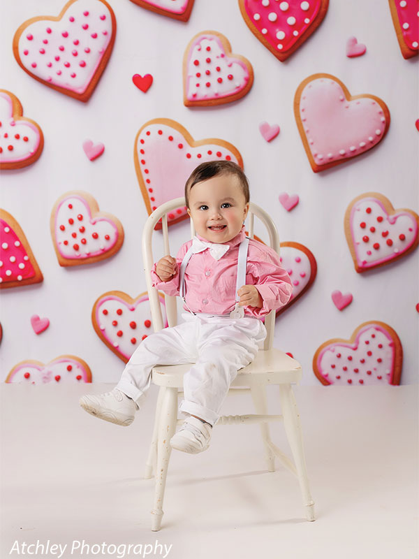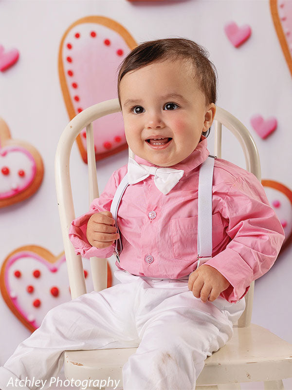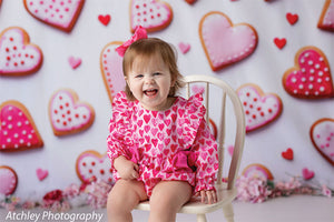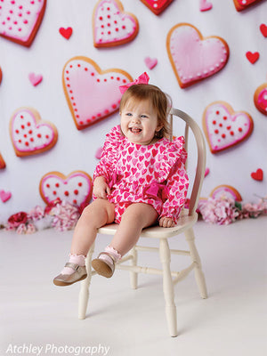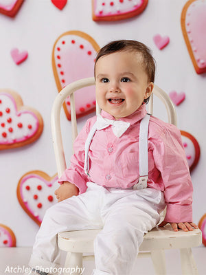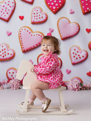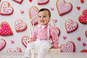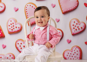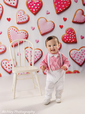 The Pink Heart Cookies Photography Backdrop is a delightful and charming backdrop designed to create a sweet and festive atmosphere for your photoshoots. This backdrop features an assortment of heart-shaped cookies decorated with pink and red icing, scattered artfully on a white background. The playful and colorful design is perfect for capturing joyful moments and creating memorable photos.