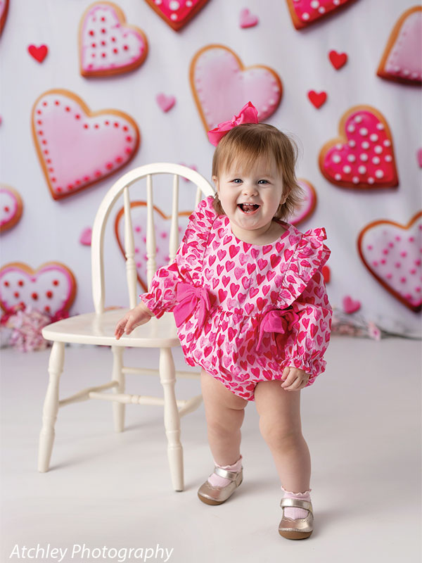 Ideal for photographers aiming to capture high-quality portraits, especially those involving children, themed shoots, and special occasion portraits. The combination of vibrant pinks and reds against the crisp white background creates a cheerful and inviting scene that highlights the subject beautifully. The detailed textures and whimsical elements add depth and interest to the photos, making each shot unique and captivating.