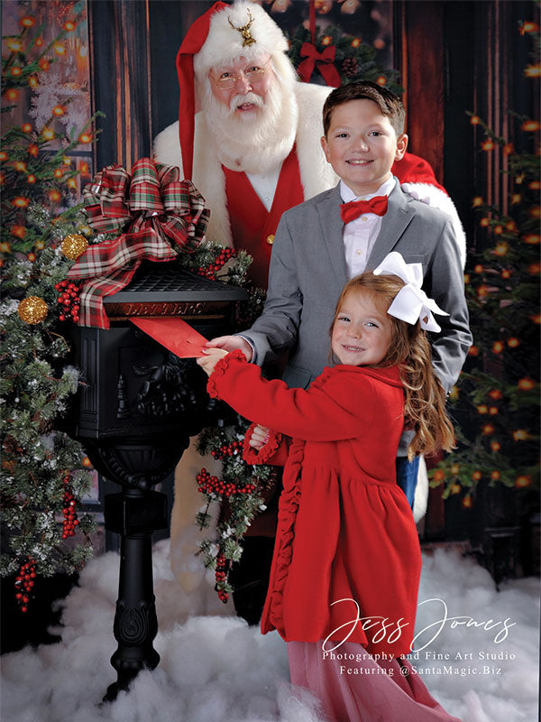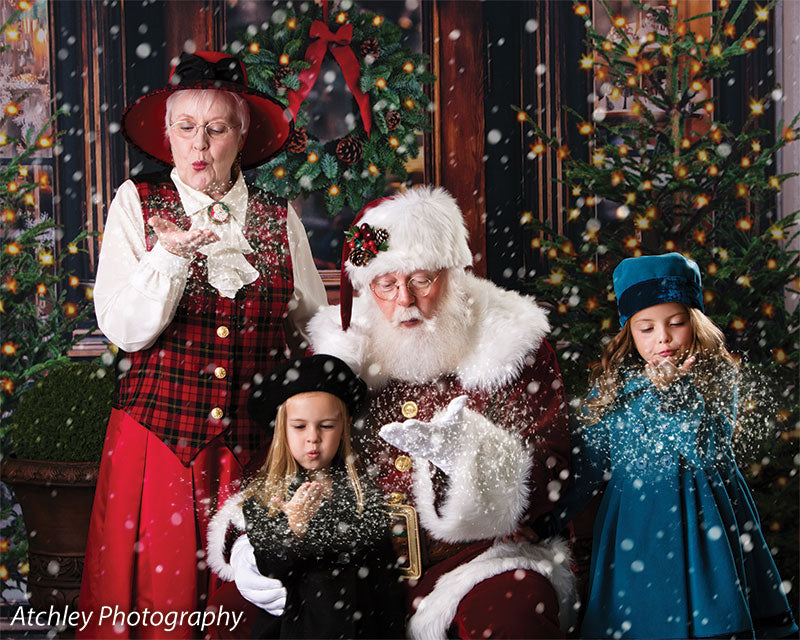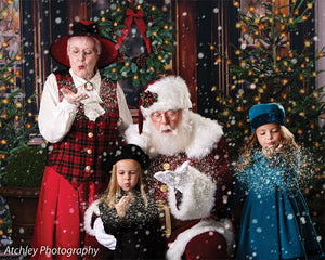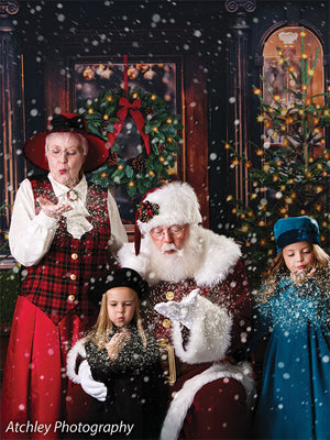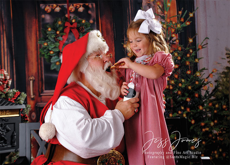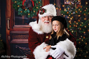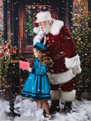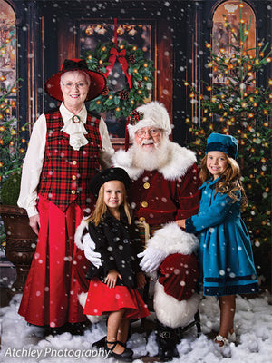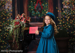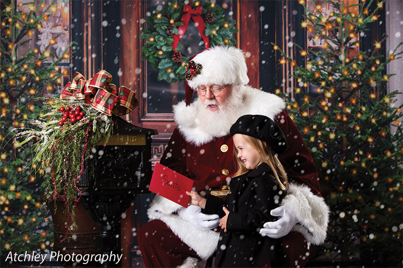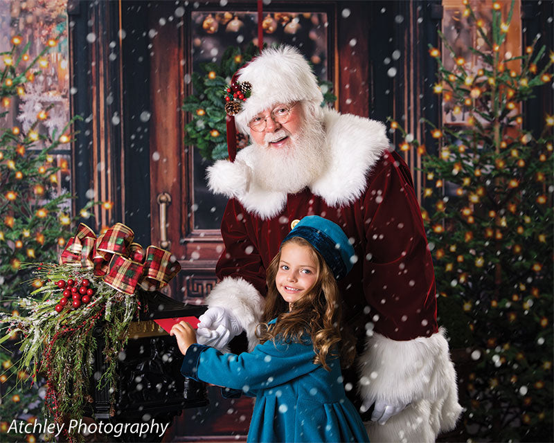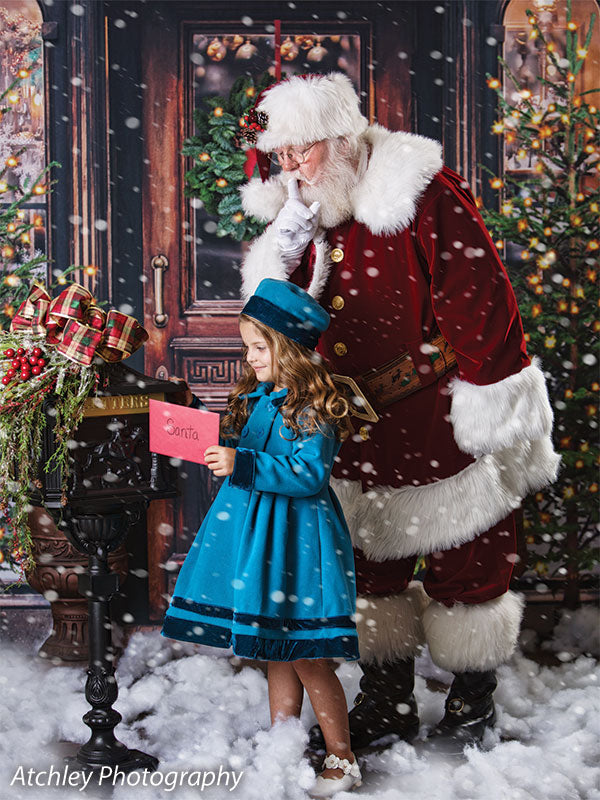 The intricate design of the wooden door, the lush greenery of the wreath and trees, and the twinkling lights are all captured in stunning detail, ensuring a beautiful and realistic backdrop for your photoshoots. Whether you're shooting in a professional studio or on location, this backdrop is sure to add a festive touch to your holiday images.