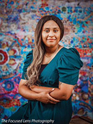 • General Description: The backdrop showcases a vibrant mosaic tile pattern, with intricate and colorful tile designs against a slightly distressed finish. The combination of bold colors and artistic design creates a dynamic and eye-catching background.