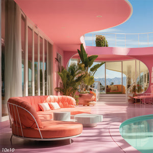Barbie Glamorous Pink Poolside Veranda Photography Backdrop