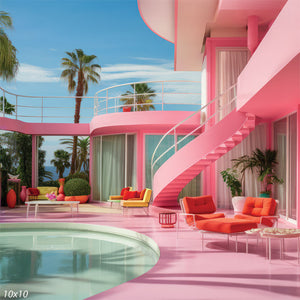 Transform your photoshoots with the vibrant and stylish Barbie's Dream Poolside Photography Backdrop. This stunning backdrop features a luxurious pink poolside scene complete with modern architecture, palm trees, and chic outdoor furniture. Ideal for creating a glamorous and playful atmosphere, this backdrop is perfect for children's photoshoots, Barbie-themed parties, fashion shoots, and any event that requires a touch of elegance and fun.