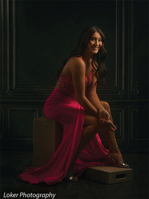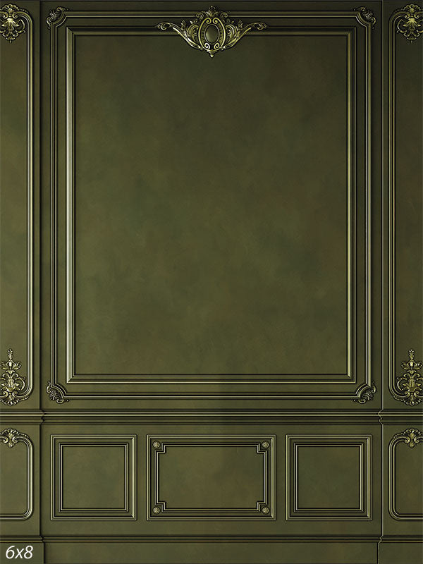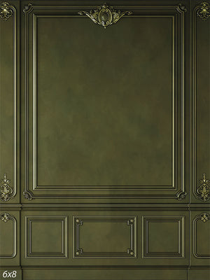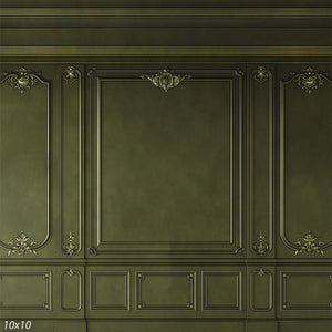 This photography backdrop is designed for professional photographers who want to bring a touch of elegance and sophistication to their photoshoots. The backdrop features a luxurious green panel with intricate golden ornamental details, making it an ideal choice for creating classic, timeless images. This backdrop is particularly well-suited for children's photoshoots, offering a regal and serene environment that enhances the subject without overpowering it.