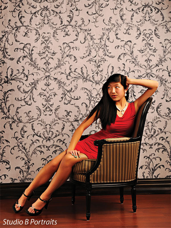 The neutral beige background provides the perfect canvas for the intricate damask pattern, ensuring that your subject remains the focal point while adding depth and texture to your images. Whether you’re capturing high-end fashion, luxury products, or timeless portraits, this backdrop is versatile enough to suit any shoot.