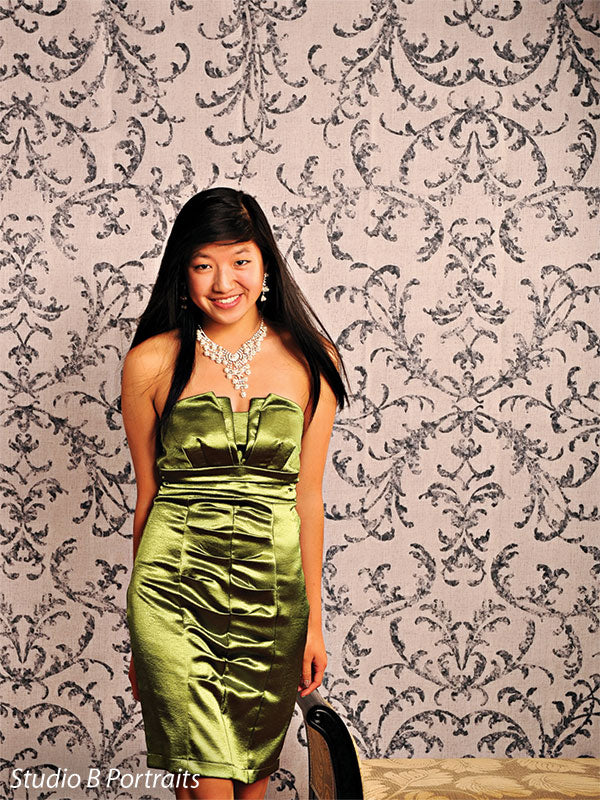 The Vintage Charcoal Damask Photography Backdrop offers a classic yet contemporary design perfect for elevating your professional photoshoots. With an intricate charcoal black damask pattern on a soft beige background, this backdrop adds a touch of elegance and sophistication, making it ideal for portraits, fashion shoots, maternity sessions, and product photography.