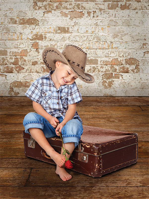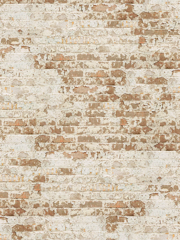 The Rustic Brick Wall Distressed Photography Backdrop brings a raw, urban aesthetic to any photoshoot. Featuring an aged brick pattern with peeling paint, this backdrop offers photographers a unique setting with a vintage, industrial vibe. The light brown, beige, and faded white tones create a neutral palette that complements a variety of subjects, ensuring they remain the focus while the backdrop adds texture and depth.