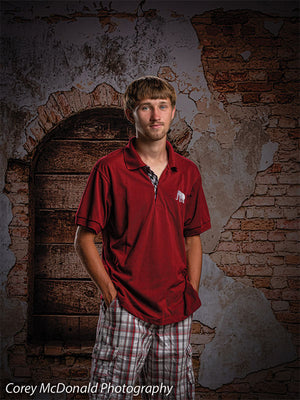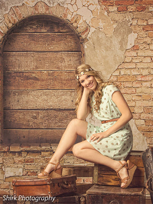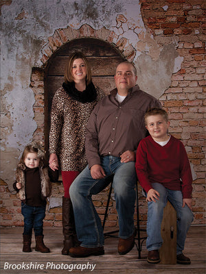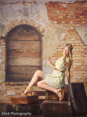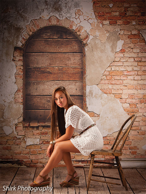 The Rustic Arched Brick Wall Photography Backdrop is designed to bring vintage elegance and weathered charm to your photoshoots. Featuring an arched, boarded-up window and textured brick wall with distressed plaster, this backdrop creates a timeless aesthetic perfect for portraits, product photography, and event photos.