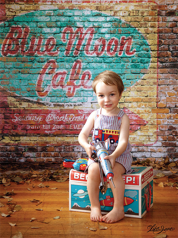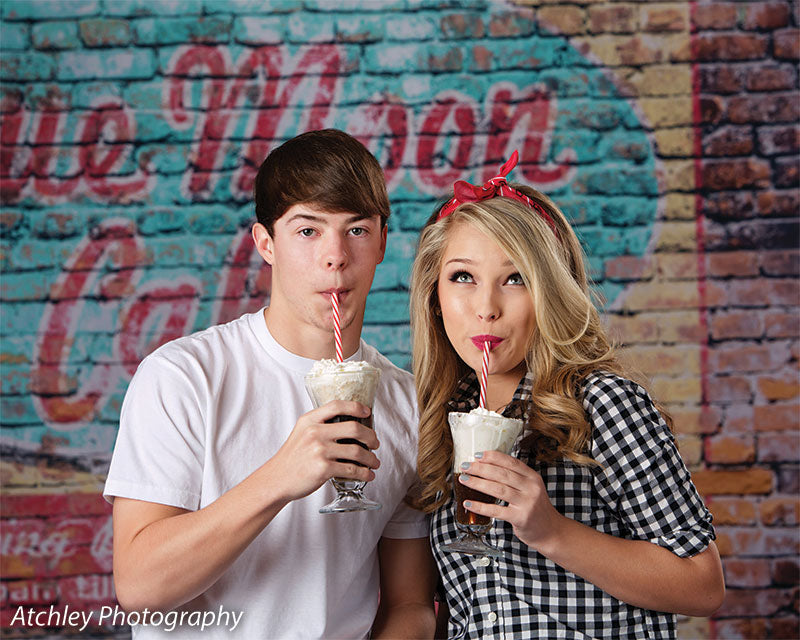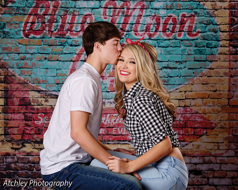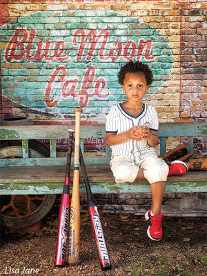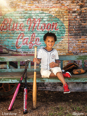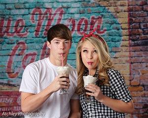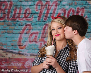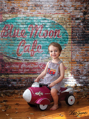 This vintage café brick wall photography backdrop adds a nostalgic, urban flair to your photoshoots. Featuring a weathered brick wall with a faded "Blue Moon Café" sign, this backdrop creates a rustic, retro atmosphere that’s ideal for a variety of photography themes. The detailed, high-resolution design captures the worn texture of the bricks and the distressed mural, making it a versatile option for portraits, lifestyle shoots, fashion editorials, and more.
