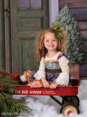 The distressed wood finish and frosted decor create a nostalgic, cozy atmosphere, making this backdrop ideal for winter wonderland or country Christmas-themed photoshoots. The backdrop's subtle holiday elements, including the “Merry Christmas” crates and frosted trees, allow it to complement any holiday attire or props you may choose for your session.