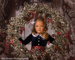 Ideal for holiday photoshoots with children, families, and even pets, this backdrop brings an elegant yet festive charm to your sessions. The cool, frosty colors combined with the warm red accents make it a versatile choice for various holiday-themed photoshoots. Available in multiple sizes and materials, it can easily fit into any studio setup.