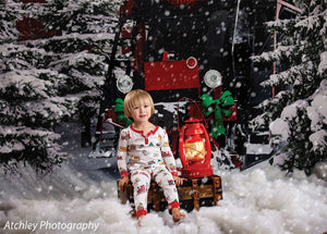 Ideal for children’s Christmas photoshoots, family portraits, and festive events, this backdrop provides a captivating setting that transports you to a magical holiday adventure. It brings to mind the excitement of a winter train ride, the joy of the season, and the warmth of being surrounded by holiday cheer.