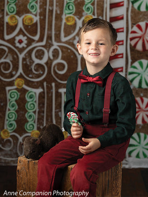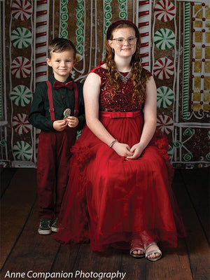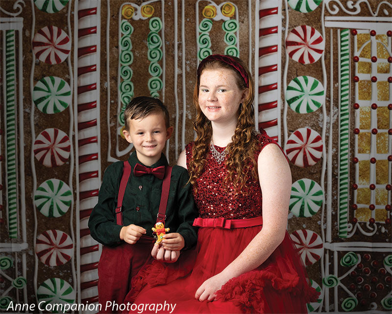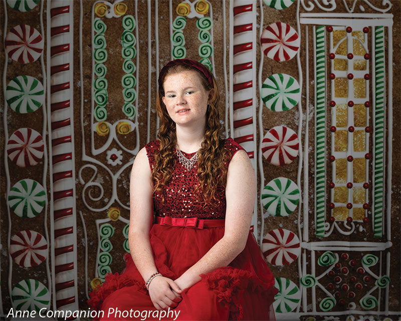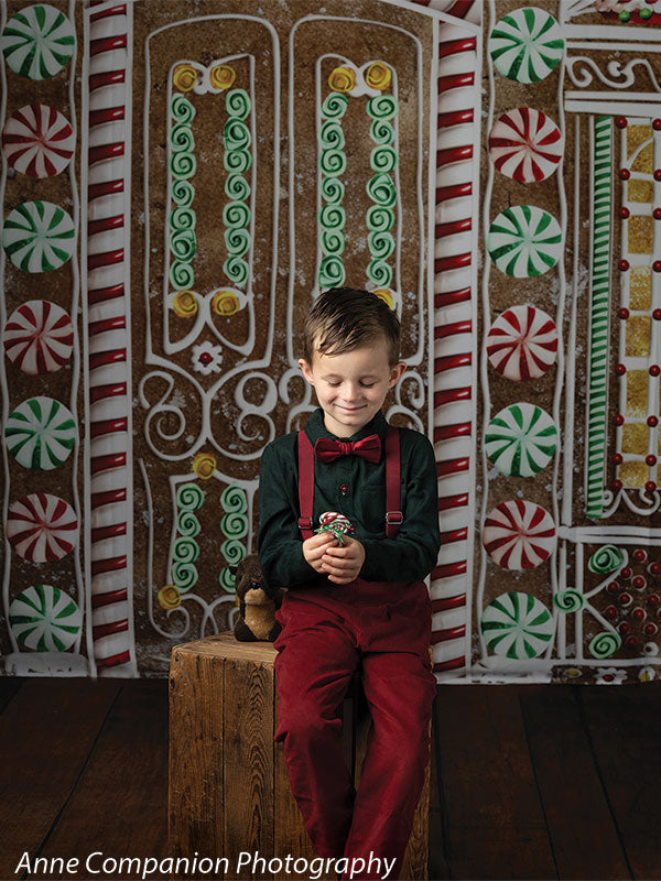 Ideal for children's portraits, family holiday photos, and whimsical-themed shoots, this backdrop brings the sweetness and charm of a gingerbread house to your studio. The vibrant colors and intricate details ensure a captivating and festive background that enhances any subject. Available in multiple sizes and materials, this backdrop caters to various studio setups and photography needs.