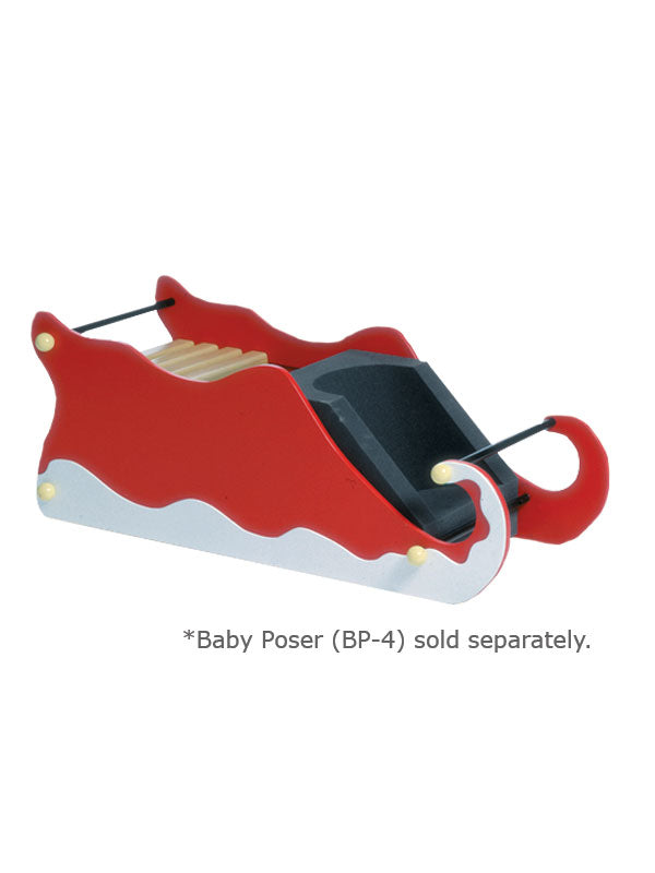 Christmas sled photography prop features a hand painted red finish with white trim, includes a wood bench seat. Only available in large size.