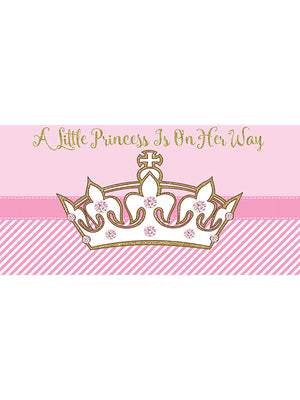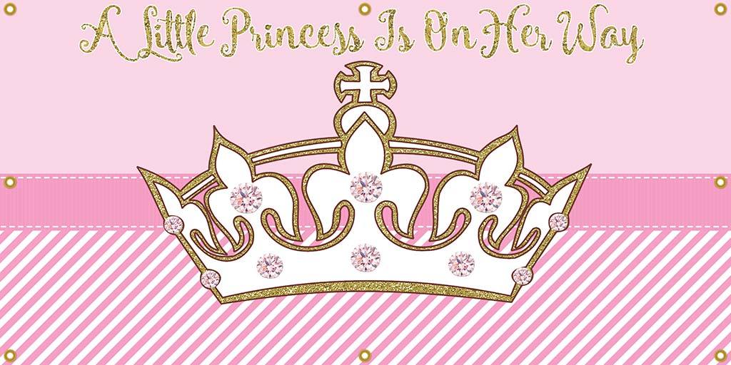 Pink princess personalized banner. Decorate a baby shower with this custom banner or personalize the perfect princess party. All banner sizes are stated width x height.