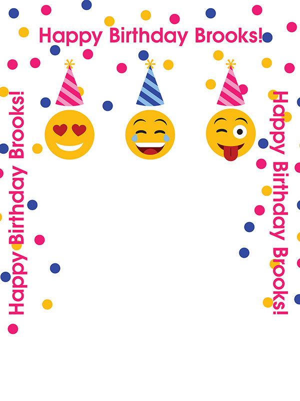 Get your best emoji face imitation ready! This emoji backdrop is fun for birthdays and all types of parties including baby, kids, and teen birthdays. Use this as a photo booth backdrop or with a backdrop stand. Throw the perfect emoji theme party at your home, school, or function. Parents, pro photographers, event planners, and photo booth owners love this popular design. Contains the classic heart eyes emoji, laughing and crying emoji, and winking tongue emoji with party hats! The background features colored polka dots and pink writing.