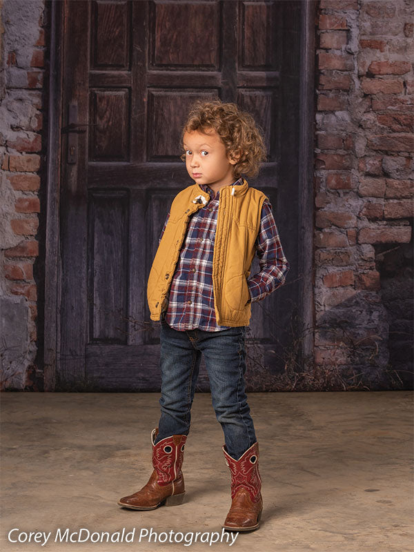 Rustic Door and Brick Wall Photography Backdrop