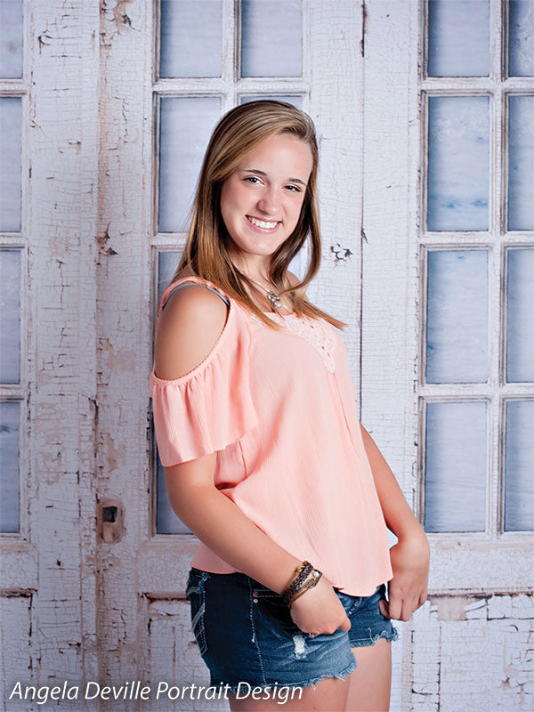 The Distressed Wooden Door Photography Backdrop brings a rustic, weathered charm to any photoshoot. Featuring tall wooden doors with peeling white paint and faded glass panes, this backdrop offers a unique, lived-in look that adds depth and character to your images. The soft whites and beiges of the backdrop create a neutral, rustic atmosphere, making it ideal for portraits, fashion, and product photography. Whether you're shooting vintage-inspired fashion or rustic home décor, this backdrop offers a textured, time-worn setting that enhances your subject while telling a story of history and charm.