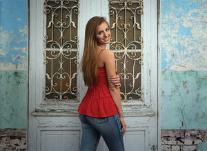 Step back in time with the Rustic Vintage Door Photography Backdrop. This beautifully detailed backdrop features an old, weathered wooden door with ornate wrought iron details set against a rustic, distressed wall. The backdrop's natural wear and peeling paint create an authentic vintage aesthetic, perfect for adding a touch of nostalgia and rustic charm to your photoshoots. With its soft pastel blues and greens, this backdrop provides a calm yet intriguing setting for capturing unique and timeless photographs.