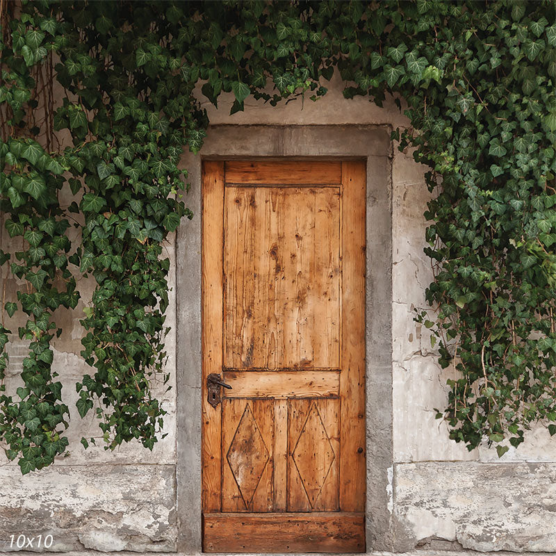 Bring the charm of a countryside home to your photoshoots with the Rustic Wooden Door Photography Backdrop. This backdrop features a beautifully aged wooden door framed by stone and lush green ivy, creating an authentic rustic look perfect for natural and vintage-inspired photoshoots.