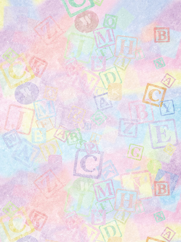 The Lullaby Photo Backdrop sets a gentle, playful tone for newborn and toddler photography with its dreamy pastel wash and soft scattering of alphabet blocks. Floating letters in shades of mint, lavender, peach, and sky blue drift across a textured watercolor-style background, creating a whimsical, light-hearted scene perfect for early childhood sessions. This backdrop provides a warm, comforting setting that lets your littlest subjects shine.