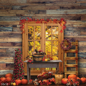 Create a cozy and festive autumn atmosphere with our Autumn Harvest Window Photography Backdrop, perfect for capturing the essence of the season in your photos.