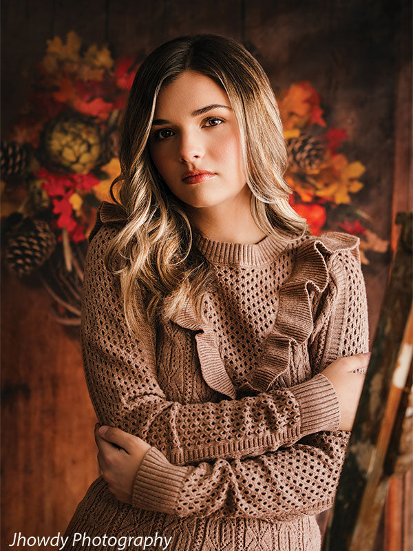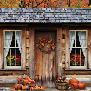 Step into the charm of autumn with our Rustic Autumn Cabin Door Photography Backdrop. This backdrop showcases a weathered wooden cabin door adorned with a beautiful autumn wreath, surrounded by a warm display of seasonal elements like pumpkins, pine cones, and fallen leaves. This cozy scene is perfect for capturing the essence of the fall season in your photoshoots.