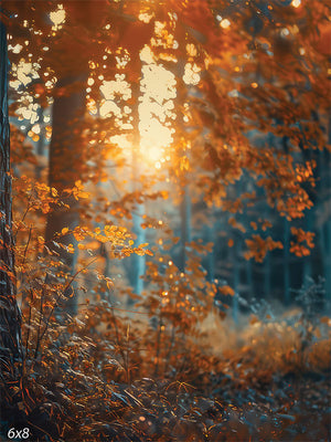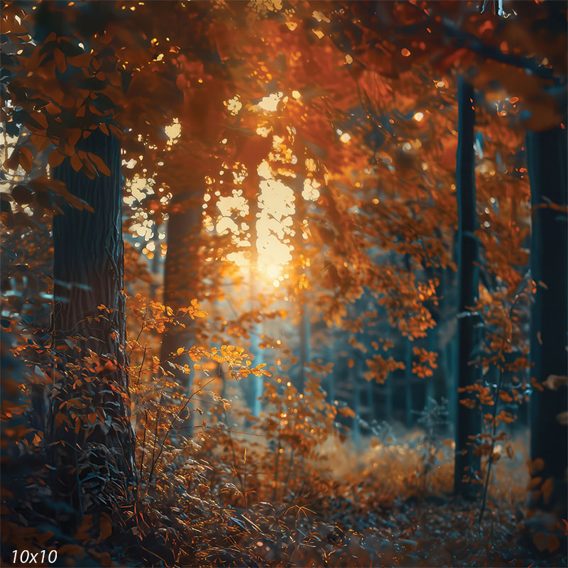 Step into the enchanting beauty of an autumn forest with our Golden Autumn Forest Photography Backdrop. This mesmerizing backdrop captures the magic of a woodland scene at sunset, where the golden rays of the sun filter through the trees, illuminating the rich autumn foliage. The warm, golden hues contrast beautifully with the deep shadows of the forest, creating a sense of depth and tranquility. The delicate leaves and underbrush are bathed in a soft, glowing light, making this backdrop perfect for creating dreamy, ethereal photographs.