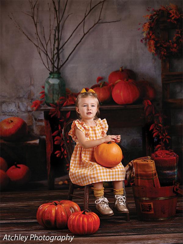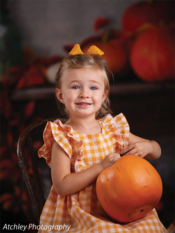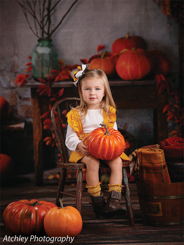 This backdrop is perfect for photographers aiming to evoke the cozy and nostalgic feel of fall in their images. It's an excellent choice for family portraits, seasonal child photography, and product shoots that require a warm, inviting backdrop. The natural elements and earthy tones make this setting versatile and easy to work with, offering a beautiful contrast for subjects in various poses.