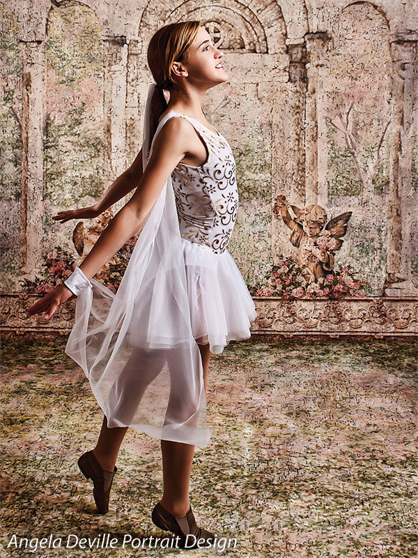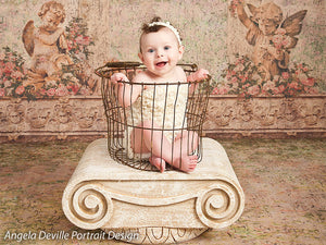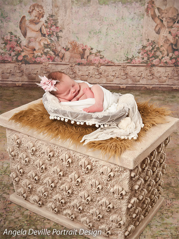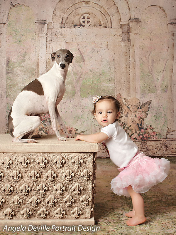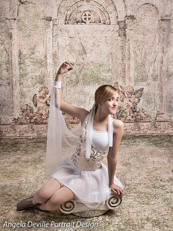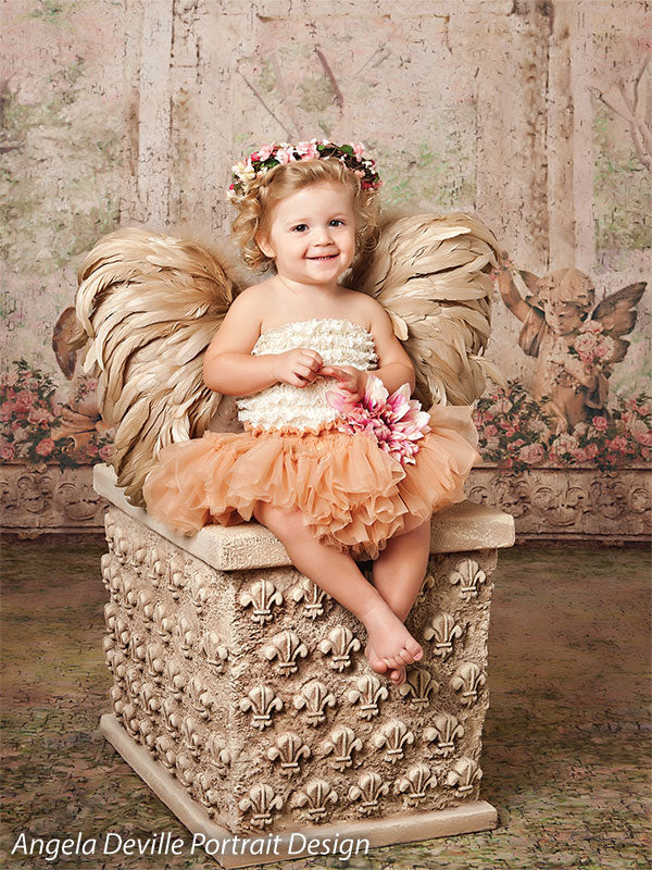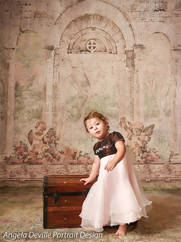 The Sweet Dreams Floral Angel Garden Photography Backdrop is a stunning addition to any professional photographer's studio. With its intricate design featuring stone arches, angel statues, and lush floral arrangements, this backdrop brings an air of elegance and serenity to any photoshoot. The soft, muted tones of the flowers, the rustic textures of the stone, and the peaceful angel statues create a backdrop that’s perfect for capturing portraits, themed photoshoots, and creative studio work. This photography backdrop evokes a dreamy, garden-like atmosphere, ideal for romantic and serene photography sessions.