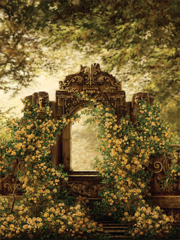 The Secret Garden Yellow Floral Arch Photography Backdrop is an enchanting setting that transports viewers into a magical garden filled with vibrant yellow roses and lush green vines. This ornate stone arch, set against a softly lit natural background, adds an ethereal and romantic element to any photoshoot. Ideal for portrait, fashion, maternity, and event photography, this backdrop offers a timeless, classic appeal that elevates any image. Available in multiple materials and sizes, the backdrop is perfect for both studio and on-location shoots.