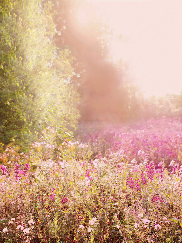 The Sunlit Wildflower Meadow Photography Backdrop brings the beauty of nature into your photography sessions. Featuring a sunlit meadow filled with pink, purple, and green wildflowers, this backdrop evokes a peaceful and romantic atmosphere. With the warm glow of the sun shining through the trees, this backdrop offers a soft, dreamy setting for all kinds of shoots, from lifestyle and portrait photography to fashion and editorial work.