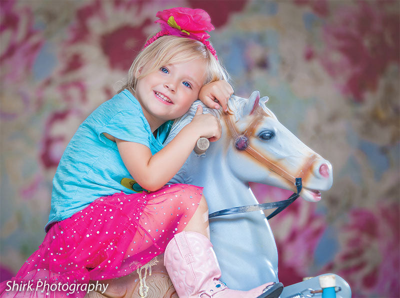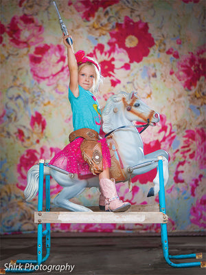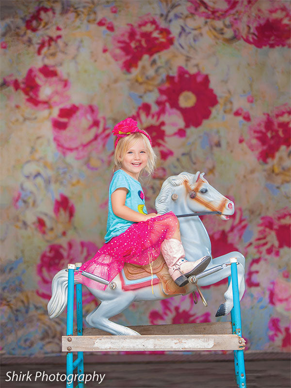 • General Description: A floral vintage photography backdrop with vibrant pink flowers and a distressed beige background. Perfect for adding a classic yet rustic touch to your images.