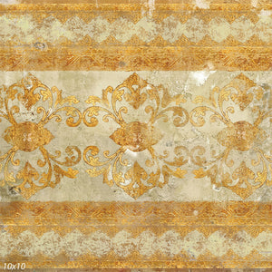 This photography backdrop is a perfect choice for photographers aiming to create a luxurious and antique atmosphere in their photoshoots. Featuring an intricate Baroque-inspired design in rich gold tones, this backdrop evokes the elegance and grandeur of historical European interiors. The backdrop's weathered texture adds depth and character, making it an ideal setting for creating timeless, classic images.