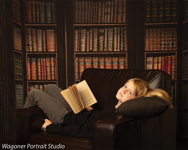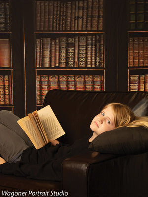 The Vintage Library Bookshelf Photography Backdrop is a perfect addition to any photoshoot, adding a touch of classic elegance and scholarly charm. This backdrop features a richly detailed bookshelf filled with an array of leather-bound books, each with unique designs and colors. The dark wood of the bookshelf provides a sophisticated contrast to the vibrant hues of the books, creating a timeless scene that is both visually striking and versatile. Ideal for creating an academic or literary ambiance, this backdrop is a must-have for photographers looking to add depth and character to their sessions.